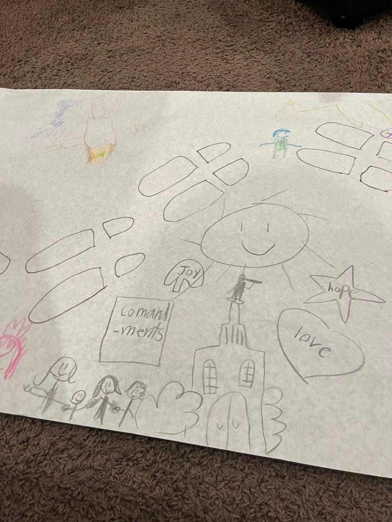 This is a really fun activity to focus on the light of the temple! Show your kids the conducting pattern (3/4) with your finger light on and ask them to follow your hand. You can draw it on the board too.